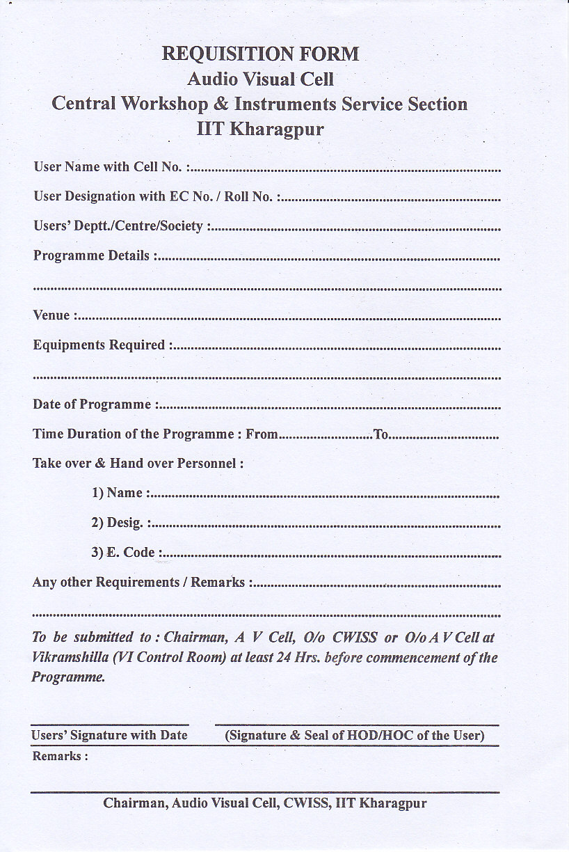 Audio Visual Cell is an important service providing unit of the Institute, it provides audio visual service & support for all regular classes of UG & PG to different lecture halls of the Institute. This unit also provide support to all Seminars, Conferences, Meetings, short term Courses, Other Student activities, Alumni affaires activities, T S G activities, cultural functions of the Institute. This unit also provide support for Senate Hall, Board room, Committee room, Convocation of the Institute, all Auditoriums, Seminar halls and all other major activities of the institute.